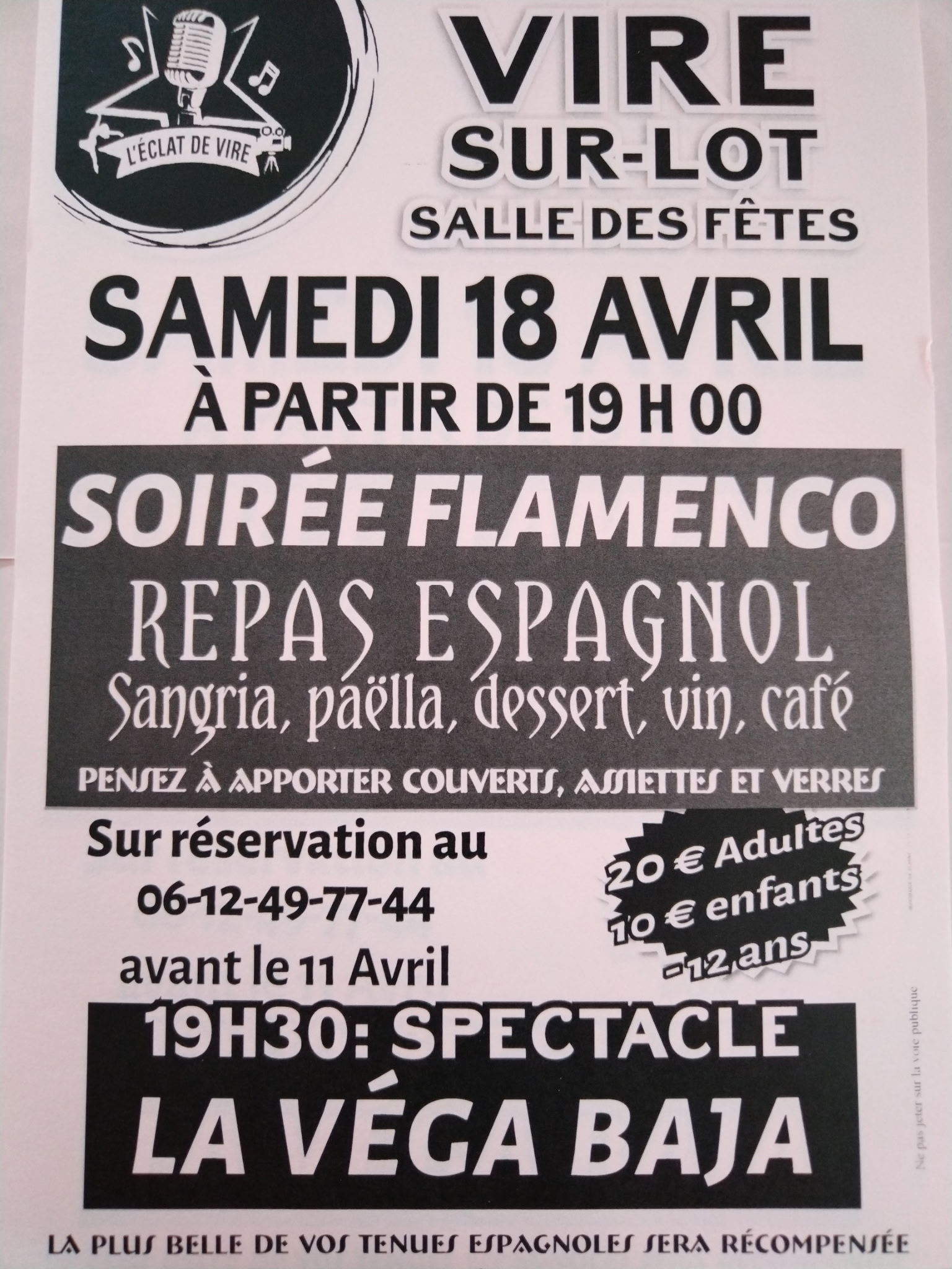 SOIREE FLAMENCO avec REPAS ESPAGNOL le 18 avril à Vire sur Lot